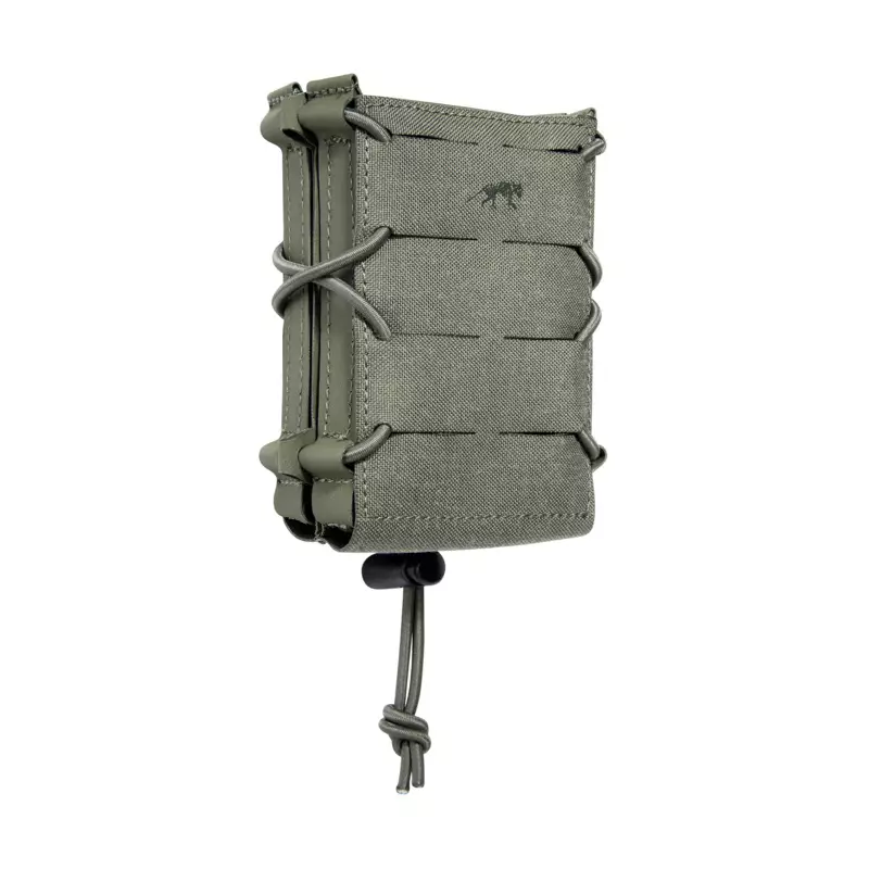 Denne magasinlommen er laget av slitesterkt CORDURA® 500 den IRR-materiale, som oppfyller de høye standardene til den tyske Bundeswehr (TL 8305-0278 og TL 8305-0281) for IRR-kamuflasje. Lommen har en bungee-strikk på siden som gjør det mulig å stramme lommen, og en snorstopper på baksiden for enkel justering. I tillegg har lommen en PFC/PFAS-fri DWR-belegg som forbedrer dens holdbarhet.