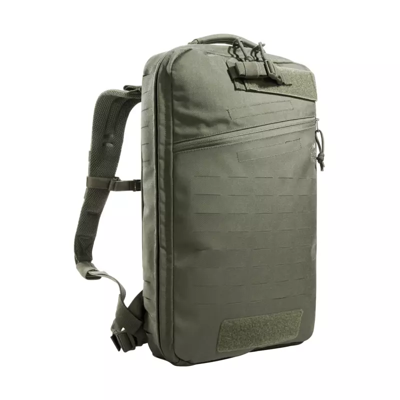 Sekkens front- og sidepaneler har et laserutskåret MOLLE-system som gjør det mulig å feste tilleggsutstyr. De lette, polstrede skulderstroppene er avtakbare og kan oppbevares i en borrelåslukket lomme på baksiden av sekken. Sekken har også stropper som gjør det mulig å feste den direkte til en beskyttelsesvest eller plate carrier-system. I tillegg har sekken bærehåndtak for rask transport i nødsituasjoner.