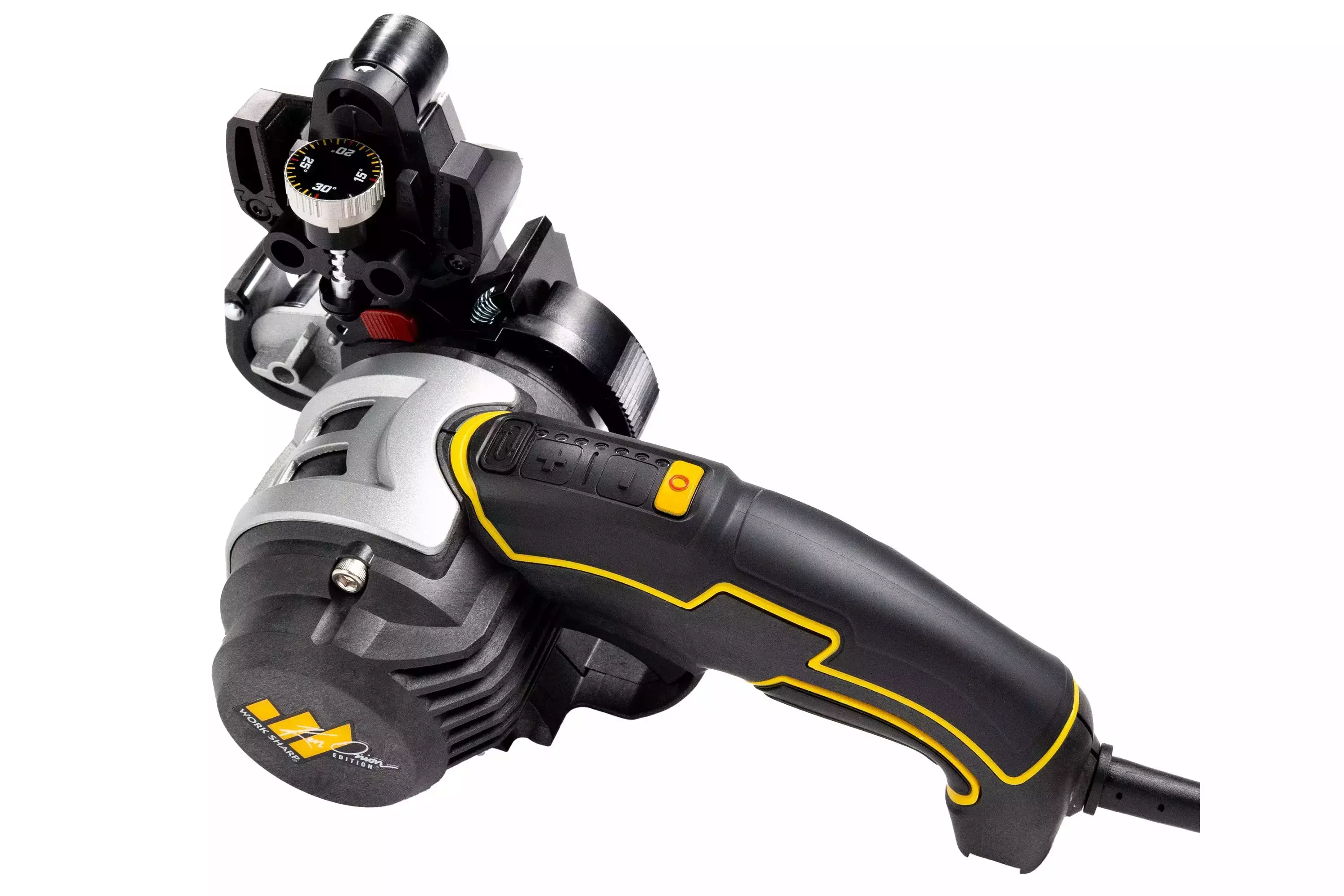 Sliperen har digital hastighetskontroll med syv hastighetsnivåer og justerbar slipvinkel fra 15 til 30 grader i trinn på 0,5 grader. Det følger med fem slipebånd med ulik kornstørrelse (120, 220, 1000, 3000 og 6000 grit). Enheten er designet for bruk med stikkontakter som følger EU-standard.